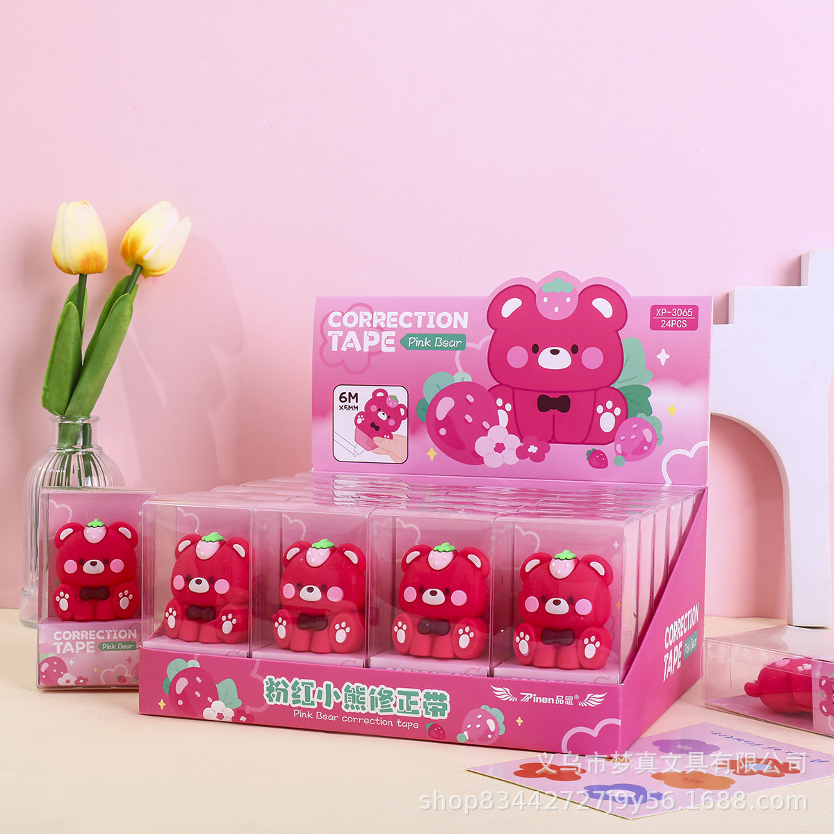 Este corrector en cinta viene decorado con un adorable osito rosadito de goma suave. Ideal para tus apuntes y para darle un toque kawaii a tu escritorio.
