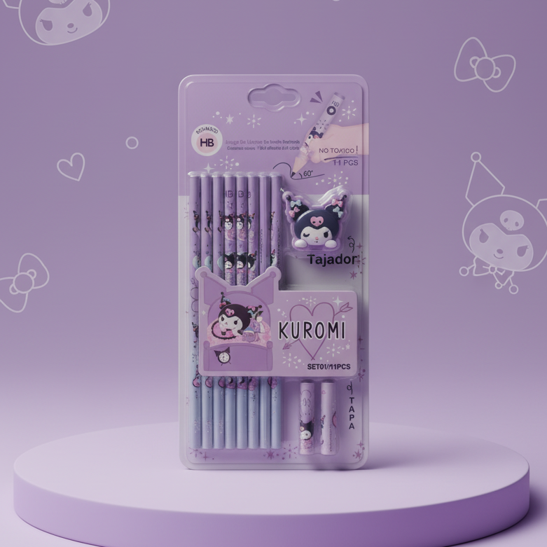 Recibirás un set de lápices de Sanrio ✨ que incluye tajador y protector de punta. Diseños adorables y perfectos para estudiar, decorar tu escritorio o llevar en tu cartuchera 🩷.